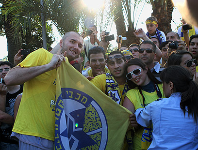 מילאן מצ'באן, עם אוהדי מכבי ת"א (צילום: עוז מועלם)