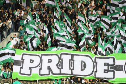 אוהדי מכבי חיפה. יצבעו את ר"ג בירוק (צילום: אלי אלגרט)