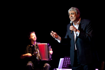 גם שירים כמו "אשת חברי", "סולנזארה", "זינגארלה", "הו גיטרה", "נערות ארצי" והתפילה שהוא נושא, "ימלוך אדושם לעולם. אלוהיך ציון לדור ודור", ממלאות את האולם בהתרגשות שתהפוך עוד מעט לחגיגה. הוא שר בגאווה על היותו יהודי ספרדי, יווני ארמני, צרפתי זר. הוא מדבר על החיים המעורבים של יהודים ומוסלמים באנדלוסיה של תור הזהב, לפני הגעתה של איזבל הקתולית, ומזמין את מלכת הלדינו הישאלית, יסמין לוי, לשיר איתו על הבמה.