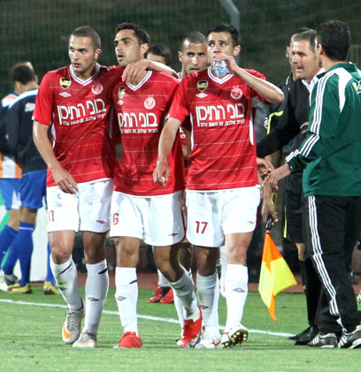 זהבי חוגג עם בן שהר ולאלא. "לא שומר על הרגליים" (צילום: עוז מועלם)