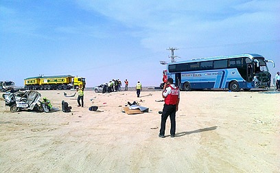 פינוי הפצועים מהתאונה, אחר הצהריים (צילום: הרצל יוסף)