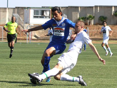 קובי מוסא מול עמרי רון. גם בקרב הזה ראשל"צ ניצחה (צילום: עוז מועלם)
