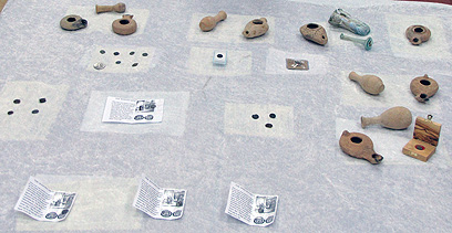 נרות חרס, מטבעות עתיקית וכלי זכוכית