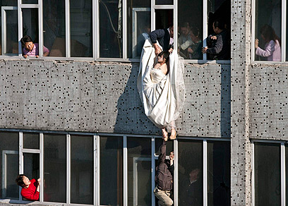 כלה סינית קפצה מהחלון ונותרה תלויה מהשמלה