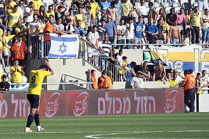 ברק יצחקי מודה לקהל הצהוב (צילום: דרור עינב)