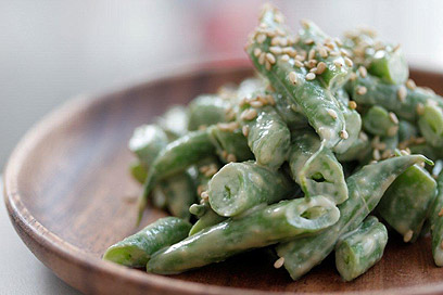 שעועית ירוקה עם מיסו וטחינה (צילום: מיכל וקסמן)