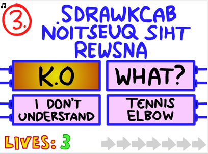מטרת החידון היא פשוט לענות על כל השאלות ולא להפסל יותר משלוש פעמים. אך התשובות דורשות להשתמש בהגיון יותר ויותר מופרע, ובחלקן צריך פשוט לנחש. זה קשה, לא בלתי אפשרי - אבל דורש לשחק את החידון שוב ושוב מההתחלה.