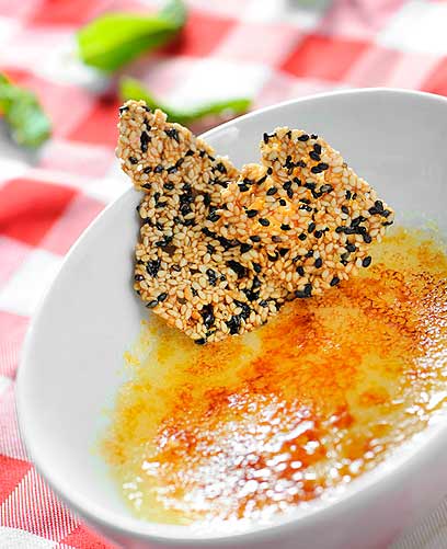 - בזמן ההגשה מפזרים סוכר חום עם מעט קינמון ושורפים בעזרת ברנר.