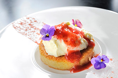 מאפה שקדים עם קרם מסקרפונה וקולי תותים (צילום: דודו אזולאי)