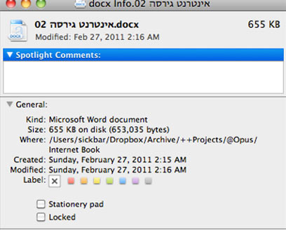 - לחצו עליו עם הלחצן הימני של העכבר ובחרו ב-Get Info. לחילופין לחצו על Command+i