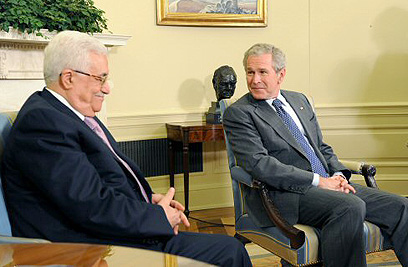 "רוצים להבטיח מדינה פלסטינית ברת קיימא". בוש ואבו מאזן (צילום: AFP)