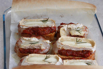 - מניחים את התבנית במרכז התנור וצולים כ-10 דקות או עד שהגבינה נמסה אבל לא נוזלת. מגישים חם.