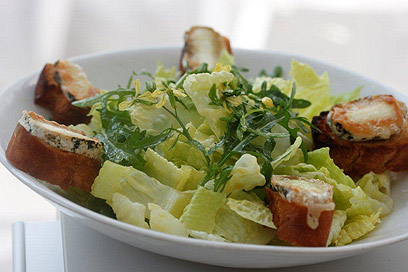 סלט ירוק עם קרוטונים של גבינת עזים חמה (צילום: מיכל וקסמן)