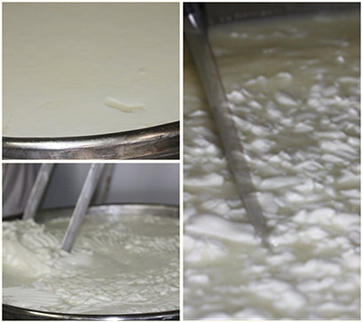 את הרכות יוצקים על ידי שפיכת הגבן אל תוך מיכלי פלסטיק קטנים עם חורים, דרכם מטפטפים עודפי המים שנפרדים ממוצקי החלב שיהפכו לגבינה. משאירים לטפטף. הופכים על ידי הקפצה. שוב מניחים לטפטף. עושים הפסקת קפה במטבח הבית שהוא בעצם קרוואן מדוגם. חוזרים להפוך שוב. יוצקים את הגבן הקשה והיבש יותר של הגבינות הקשות אל תוך מכלים גדולים מכוסים בחיתול בד שעוקר רגע קודם בהרתחה בסיר על הגז במטבח. מניחים לטפטף והופכים. וחוזר חלילה.