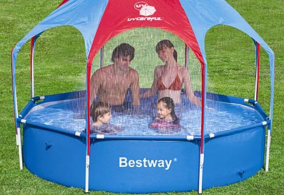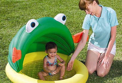רשת כפר השעשועים מציגה בריכה מתנפחת מעוצבת לקטנטנים עם צלון להגנה מפני קרינת השמש. גודל הבריכה 109/114/74 ס"מ, והיא מתאימה לילדים מגיל שנה ומעלה. מחיר: 120 שקל, כמו כן מוצעים מגוון שעשועי מים, במיקום ריכות בגדלים שונים, כדורים מתנפחים, מצופים, מזרוני ים לכל הגילאים ועוד. להשיג ברשת כפר השעשועים. לבירור החנות הקרובה, טלפון: 1-700-502626.