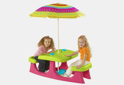 כתר פלסטיק משיקה שולחנות הפעלה חדשים לילדים: שולחן יצירה עם לוח שקוף ומחיק. השולחן מכיל קופסאות ארגונית, הנעות על ציר ומיועדות לאחסון כלי היצירה השונים - מכחולים, צבעים ודפים. מבנה השולחן מאפשר גישה נוחה ל-2 הילדים המשתמשים בו בעת ובעונה אחת ושקיפות הלוח. מחיר: 350 שקל. שולחן פיקניק צבעוני עם שני מושבים מחוברים ובמרכזו שמשייה. מחיר: 310 שקל. להשיג בחנויות כתר, אייס, הום סנטר ובחנויות מובחרות.