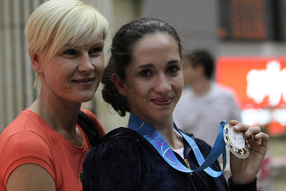 ריבקין והמאמנת אלה סמופלוב בנתב"ג (צילום: אורן אהרוני)