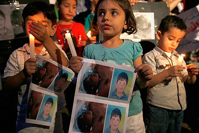 הפגנה בלבנון לזכר הילד חמזה אל-חטיב שנהרג בסוריה (רויטרס)