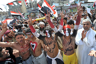 חוגגים את "הניצחון על סאלח". מפגינים בצנעא (צילום: EPA)