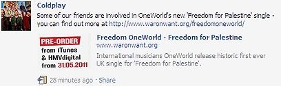 קולדפליי הסירה את "חופש לפלסטין" מהפייסבוק