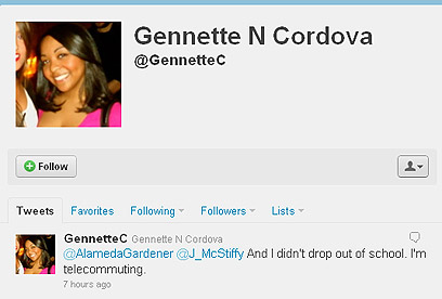 בוושינגטון פוסט מדווחים שקורדובה חזרה לצייץ תחת הכינוי GennetteC - חשבון שיש לו כ-1,000 עוקבים כרגע. בין השאר היא נוזפת בניו יורק פוסט ואומרת "למה שארצה להתראיין לצהובון על כך שאני לא רוצה תשומת לב תקשורתית? זבל". היא האשימה אותו שהשיג ממנה ציטוטים על ידי התחזות למישהו אחר. היא כתבה גם שדברים מתחילים לחזור לשגרה, ושהיא בקושי יצאה מהבית בתשעת הימים האחרונים.