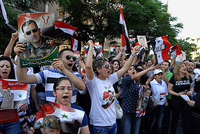 לא רק רוסיה בעד אסד. הפגנת תמיכה בנשיא הסורי בדמשק (צילום: AP)