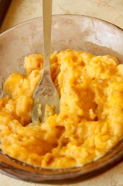 3 בננות בשלות בגודל בינוני, מעוכות למחית