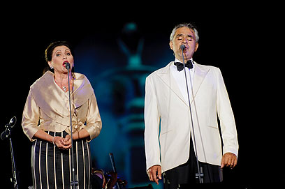 דווקא מהדואטים של סנגינטי ובוצ'לי קשה היה להתלהב. תנאי השטח לא ממש איפשרו לאנשי הסאונד לסנכרן כהלכה בין הקולות של השניים. רק לקראת סופו של הלהיט האופראי "לחיים" מתוך "לה טרוויאטה" של ורדי, שסגר את חלקו הראשון של הערב, השתרגו הקולות הנהדרים של הטנור, הסופרן וזמרי המקהלה אלו באלו ושלחו את הקהל מרוצה לעשות "לחיים" קצר משלו בבר.