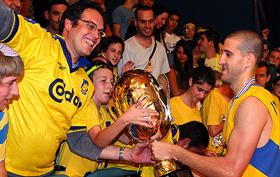 טל בורשטיין ומכבי ת"א מניפים את גביע השנה שעברה (אלי אלגרט)