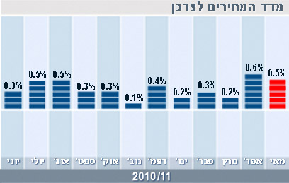 מדד המחירים לצרכן לחודש מאי עלה ב-0.5%