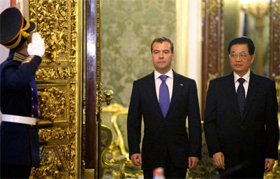 לאיראן יש זכות להשתמש באנרגיה גרעינית למטרות שלום. כך מסרו היום (יום ה') בהצהרה משותפת נשיא סין הו ג'ינטאו ועמיתו הרוסי דמיטרי מדבדב. שתי המעצמות גם הודיעו כי הן מוכנות לשתף פעולה עם פרטנריות נוספות כדי להביא לחידוש שיחות הגרעין עם צפון קוריאה.