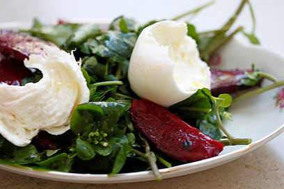 מוצרלה עם סלק צלוי ועלי גרגיר או רוקט (צילום: מיכל וקסמן)