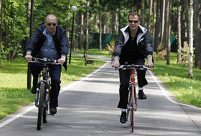 המירוץ כבר החל, רק שלא מדברים עליו. מדבדב ופוטין (צילום: MCT)