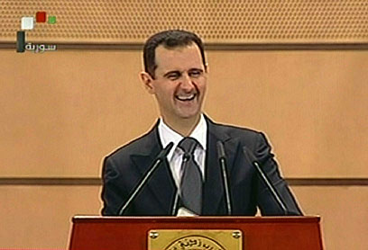 "שקרן, שקרן", צעקו מתנגדי הנשיא הסורי לאחר נאומו. אסד (צילום: AFP)