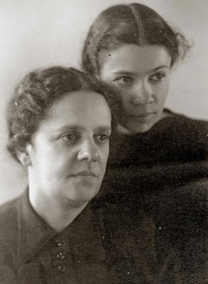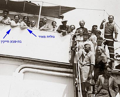 4. על התצלום מאחור נרשם: "לבת-שבע בידידות מבבה ורבקה, ינואר 1945 לפני צאתי לאמריקה". בתצלום: בבה (טרכטנברג) אידלסון, אשר קורות חייה דמו לאלו של בת-שבע חייקין. הייתה חברה בארגון צ"ס ברוסיה והקימה הגנה עצמית של יהודי יקטרינוסלב-אוקראינה כנגד הפוגרומים. הסובייטים הגלו אותה לסיביר ורק בהתערבות אשתו של מקסים גורקי שוחררה וגורשה לא"י בשנת 1924. היא נישאה עוד ברוסיה לישראל (אידלסון) בר-יהודה, ושם נולדה בתם היחידה רבקה.