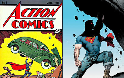 מימין - סופרמן בגרסה העכשווית. משמאל - סופרמן הנוסטלגי של הקומיקס
