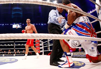 המתאגרף הגדול מכולם. ולדימיר קליצ'קו גבר לפנות בוקר (א') על דייויד היי וזכה באליפות העולם במשקל כבד מטעם התאחדות ה-WBA. האוקראיני בן ה-35 אומנם לא הצליח להפיל את יריבו הבריטי בנוקאאוט, אך שלט ללא עוררין לאורך 12 סיבובים וניצח בהחלטת שופטים כדי לזכות בתואר.