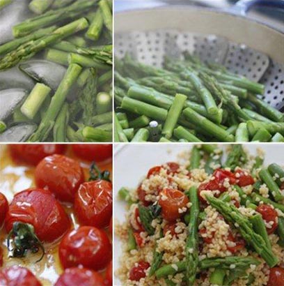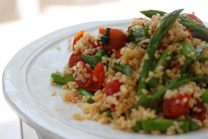 אספרגוס עם בורגול והמון עגבניות - חגיגת צבע (צילום: מיכל וקסמן)