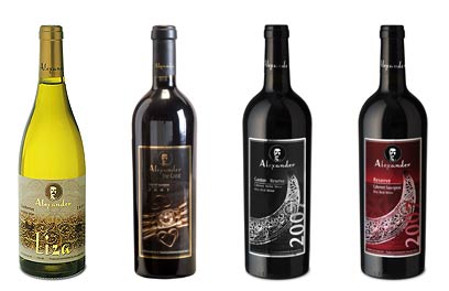 אלכסנדר הגדול 2007 - בלנד של קברנה סוביניון, פטי ורדו וגרנאש. הענבים נבצרו בכרמים בן זמרה ובכפר שמאי שבגליל העליון, שגילם 10-29 שנים. הבציר של היין הזה הינו ידני בלבד והמיון קפדני ומדוייק. היין התיישן משך 36 חודשים בחביות עץ אלון צרפתי (90%) ואלון אמריקאי (10%). 279 שקלים.