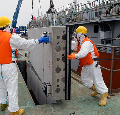 מתקן ללכידת זיהום רדיואקטיבי מוצב במתחם הכורים הפגוע (צילום: רויטרס)