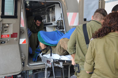 החייל מפונה לבית החולים. נפגע מרסיסים בפניו (צילום: הרצל יוסף)
