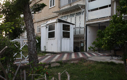 עמדת שמירה מחוץ לביתו של אלדד חדד, שנורה (צילום: אבישג שאר ישוב)