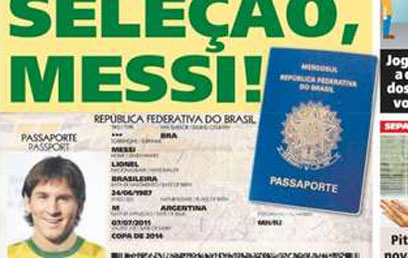 העיתון הברזילאי 'מייה הורה' (חצי שעה) פרסם על השער שלו תמונה של מסי במדי נבחרת ברזיל, עם דרכון מעודכן של הברזילאים עבורו והכותרת: "תבוא לסלסאו , מסי! אם כבר האחים שלנו לא רוצים אותך...".