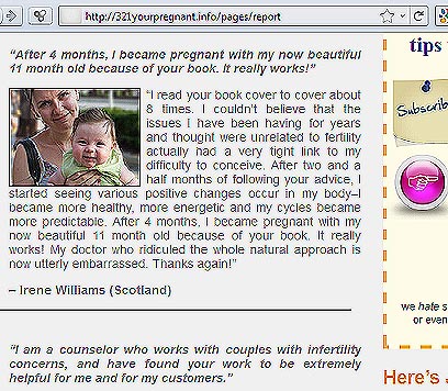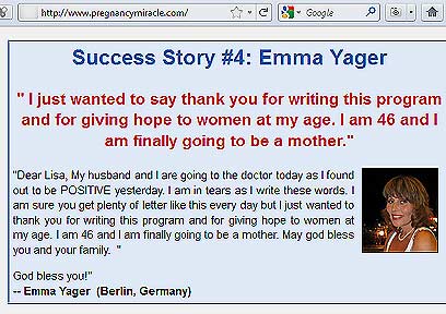 באופן מפתיע, כל הנשים שהשתמשו בתוכנת ההאזנה הצליחו להרות באמצעות המוצר הסיני הפלאי, והן מעידות על כך בשמחה, תוך שימוש בתמונתן, שמן המלא ובכתובת שלהן. השמות והכתובות שלהן שונים לגמרי מאלו שהופיעו באתר של תוכנת ההאזנה, רק התמונה זהה.