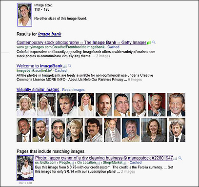 גלינג-גלינג-גלינג! העליתי את התמונה של יעלי, והמתנתי בקוצר רוח במשך חצי השנייה שלקח לגוגל לחפש אותה. איזו אכזבה! לפי התוצאות נראה שיעל היא סתם תמונה מבנק תמונות והיא בכלל בעלת עסק לניקוי יבש!