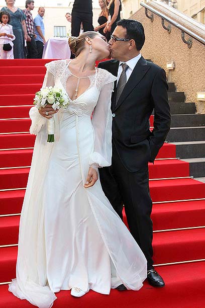 ענן כבד של אי בהירות ריחף מעל חתונת השניים, והפעם לא בגלל מערכת היחסים שלהם אלא עקב נסבות מצערות. אביו של מאנה נפטר לאחרונה, אך שבועיים לפני מותו, כך מספרים מקורבים, הפציר בבנו שיתחתן גם אם הוא יילך לעולמו בטרם עת - וכך קרה. כשלוש מאות מוזמנים הגיעו לבית הכנסת הגדול ברחוב אלנבי בתל אביב, שם נערכה החתונה המצומצמת בהפקת אלירן ברדוגו, כשבין האורחים מצאנו אנשי עסקים, בכירים מעולם הספורט וכמובן, גם מתעשיית הבידור.