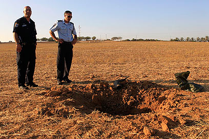 מקום נפילת אחת הרקטות (צילום: צפריר אביוב)