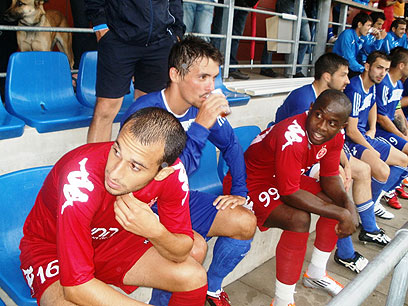 בונדר עם עומר דמארי וטוטו תמוז (צילום: קובי ברדה, אתר הפועל ת"א)