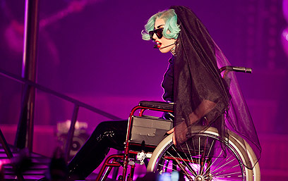 גאגא מתגלגלת: הופעתה ה"סודית" של ליידי גאגא אמש (ה') בסידני טאון הול באוסטרליה הדהימה, כרגיל, את הקהל, שמנה כאלף איש. כשהגיע תורו של השיר השישי, "You And I", עלתה הזמרת לבמה בכסא גלגלים. האקט הכעיס מאוד את נציגי ארגוני הנכים "Life Rolls On" וה-Roman Reed Foundation.