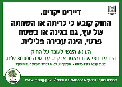 קמפיין חדש מזכיר: 'כריתת עצים - עבירה פלילית'
